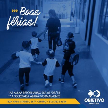 RETORNO DAS AULAS: 01/08/2018 Obs. Durante o período de férias escolares a secretaria funcionará das 9 às 17h!